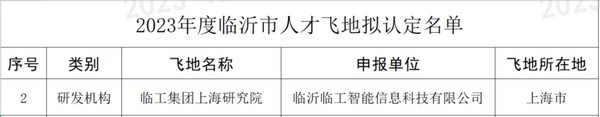 近日,临沂市科学技术局公布2023年度临沂市人才飞地认定名单,临沂MMK体育|SPORT-MK体育国际|恩波利足球俱乐部赞助智能信息科技有限公司成功入选。此次入选“人才飞地”是对公司在人才引进、培养以及研发创新方面的充分肯定和高度认可。